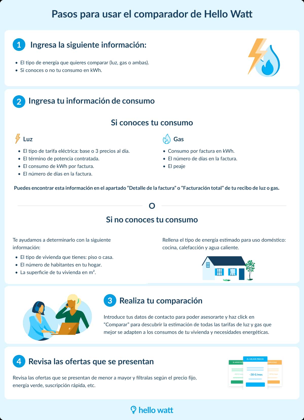 Para usar el comparador de Hello Watt, solo debes seguir los siguientes pasos: